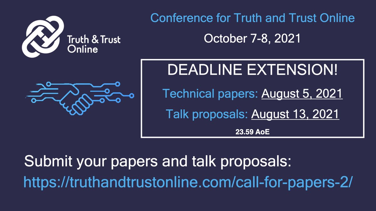 Truth And Trust Online On Twitter Deadline Extension Ttocon2021 The Deadline For Technical Paper Submissions Was Extended By 1 Week